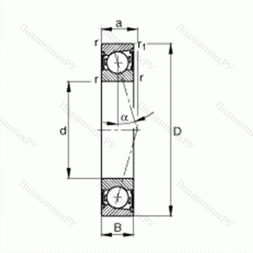 - При увеличении контактного угла устройство дает возможность перераспределять прилагаемые рабочие осевые нагрузки в аксиальном направлении и тем самым снижать давление, оказываемое на шарикоподшипники. Соответственно, при уменьшении данного показателя осесимметричный вектор приложения сил падает, а воздействие по оси растет.